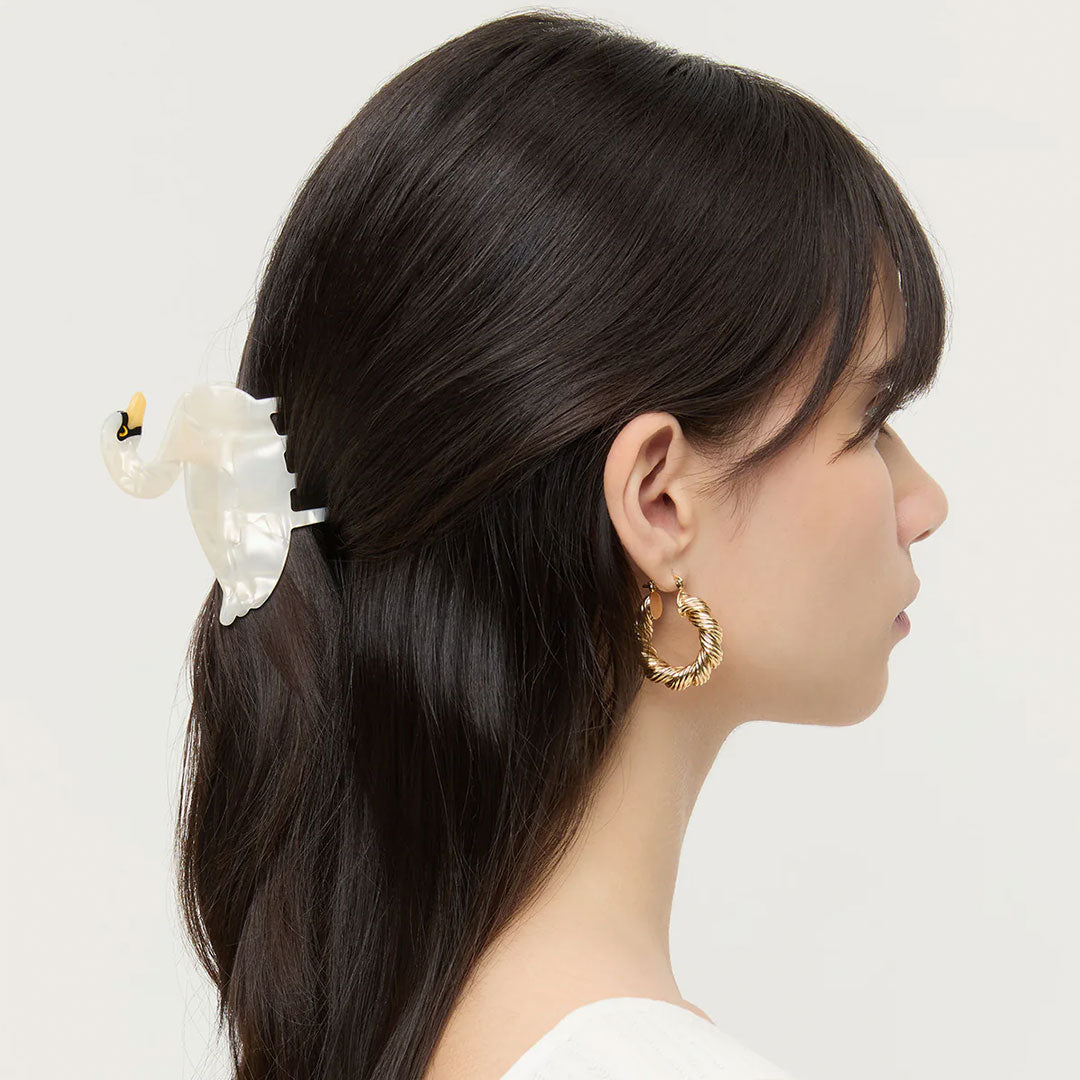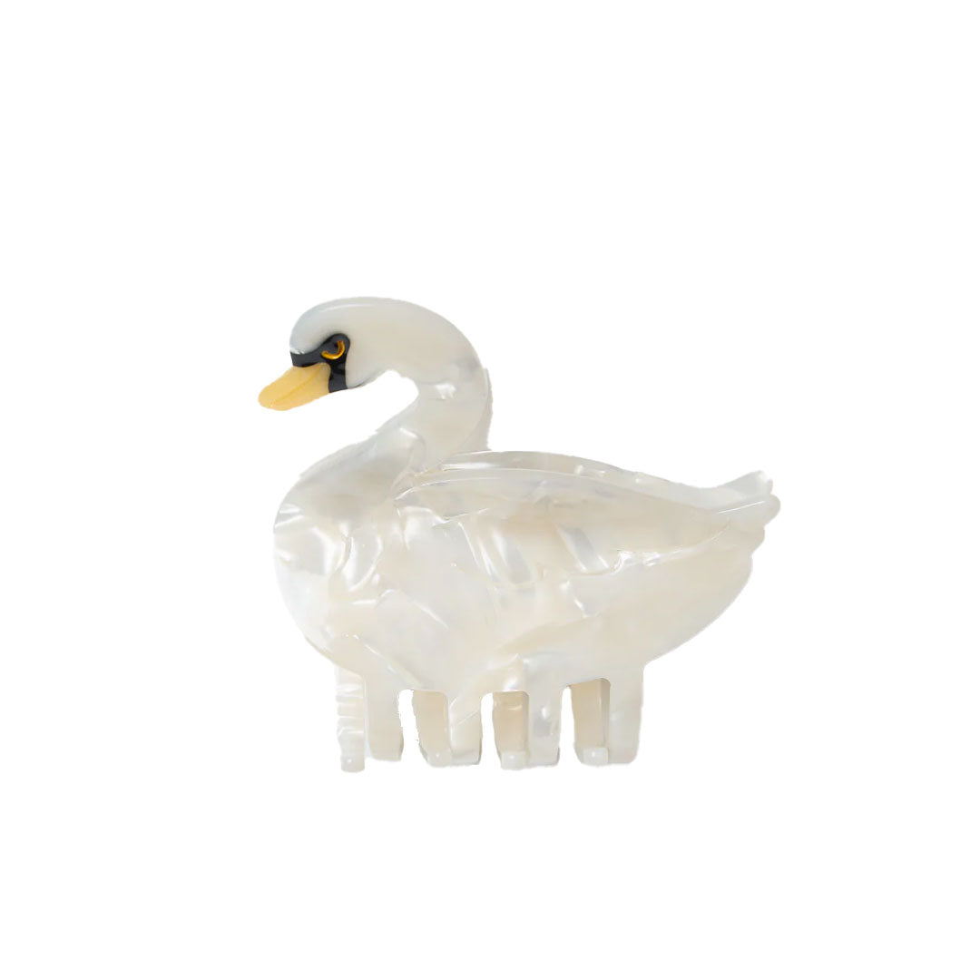 Swan shaped claw clip in iridescent cream resin.