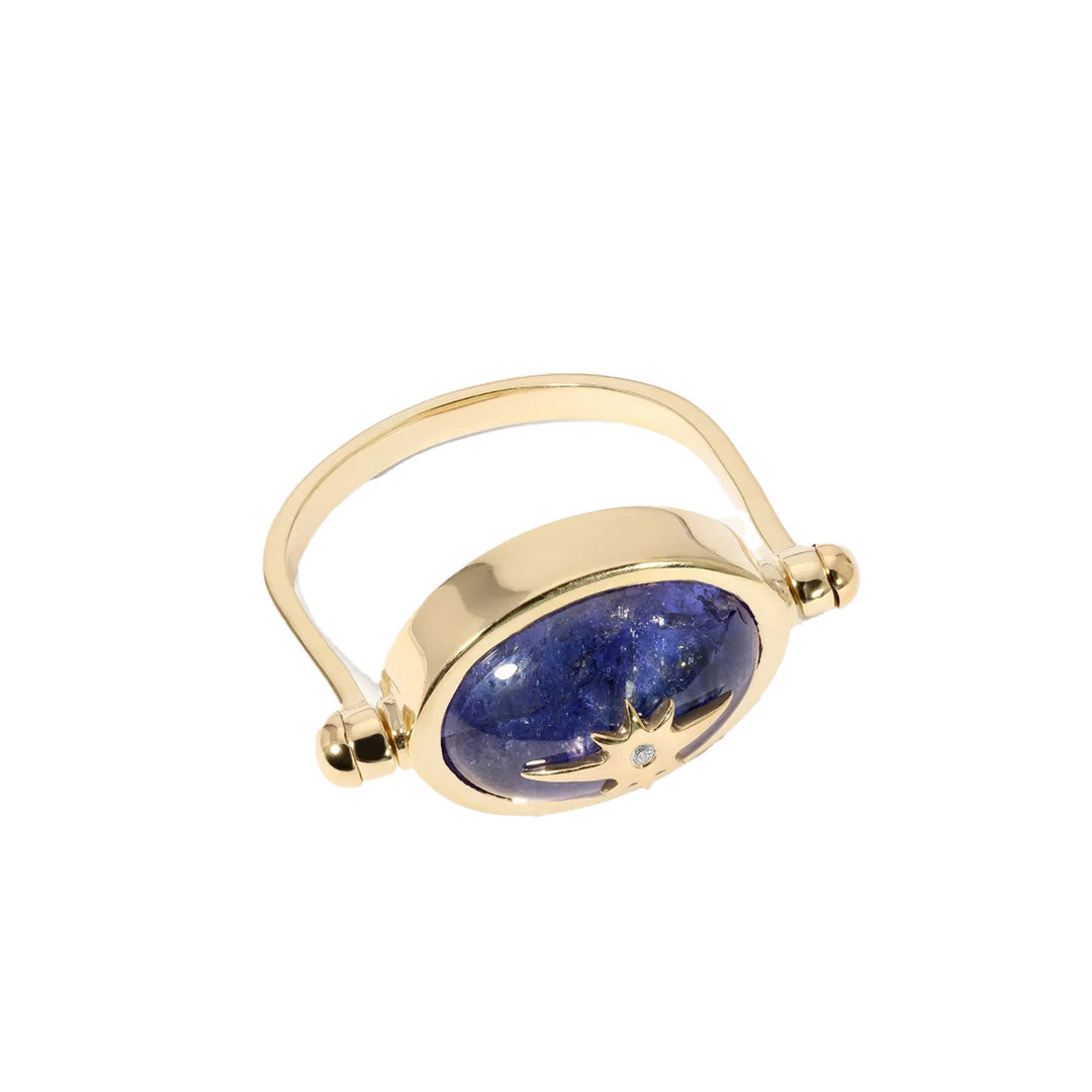 This spinning Tanzanite ring showcases our classic Star on the front, and reveals the word "Light" engraved on the back.