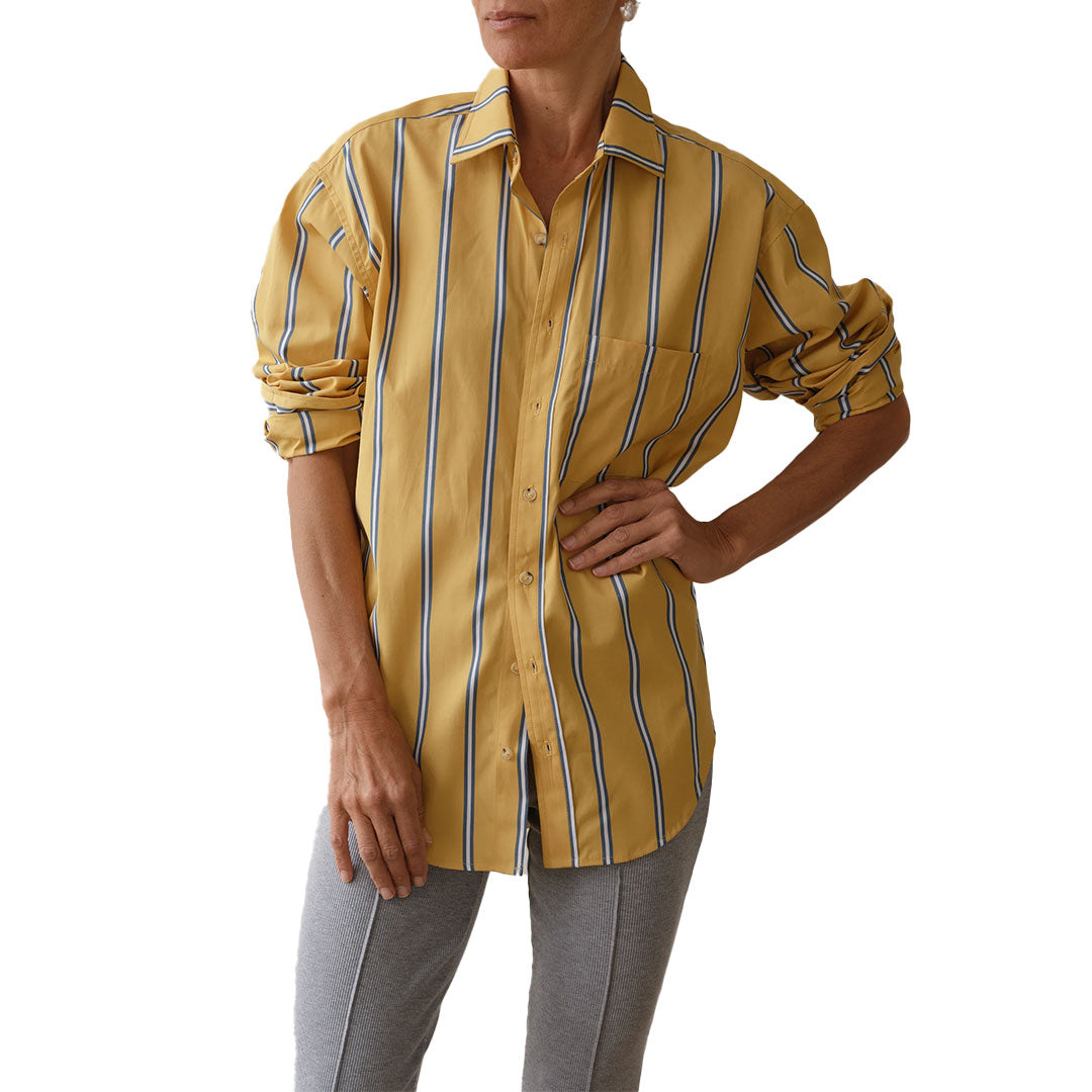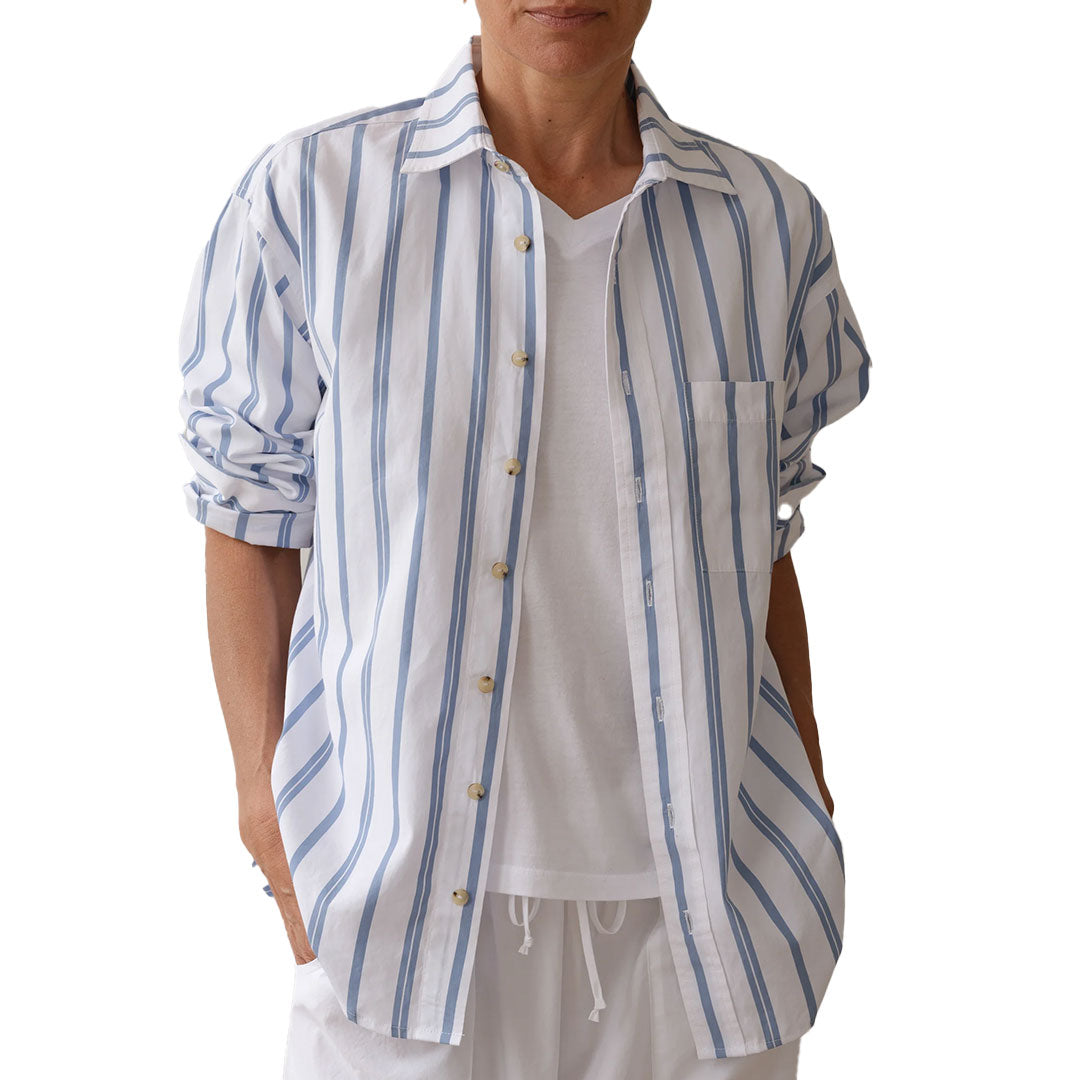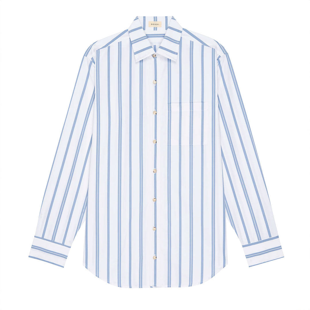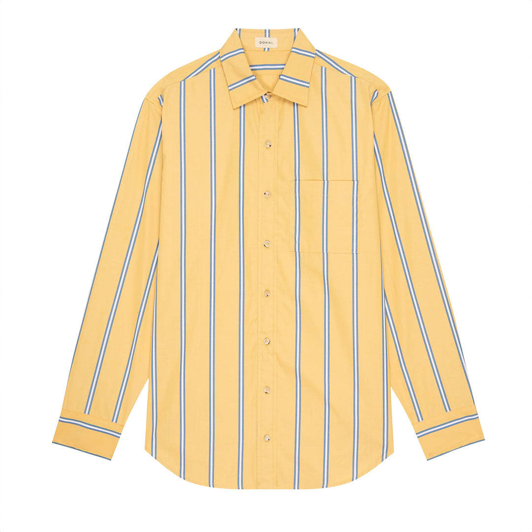 The Pop Button Down is crafted from 100% cotton poplin. Featuring a subtle dropped shoulder, relaxed fit, and tortoise-like buttons.