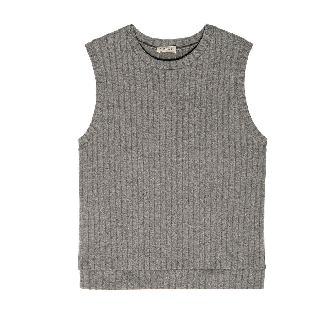 Crafted from Donni's signature ultra-soft sweater rib fabric. Designed with a classic crew neckline, sleeveless silhouette, and finished with a banded hem for an elevated touch.