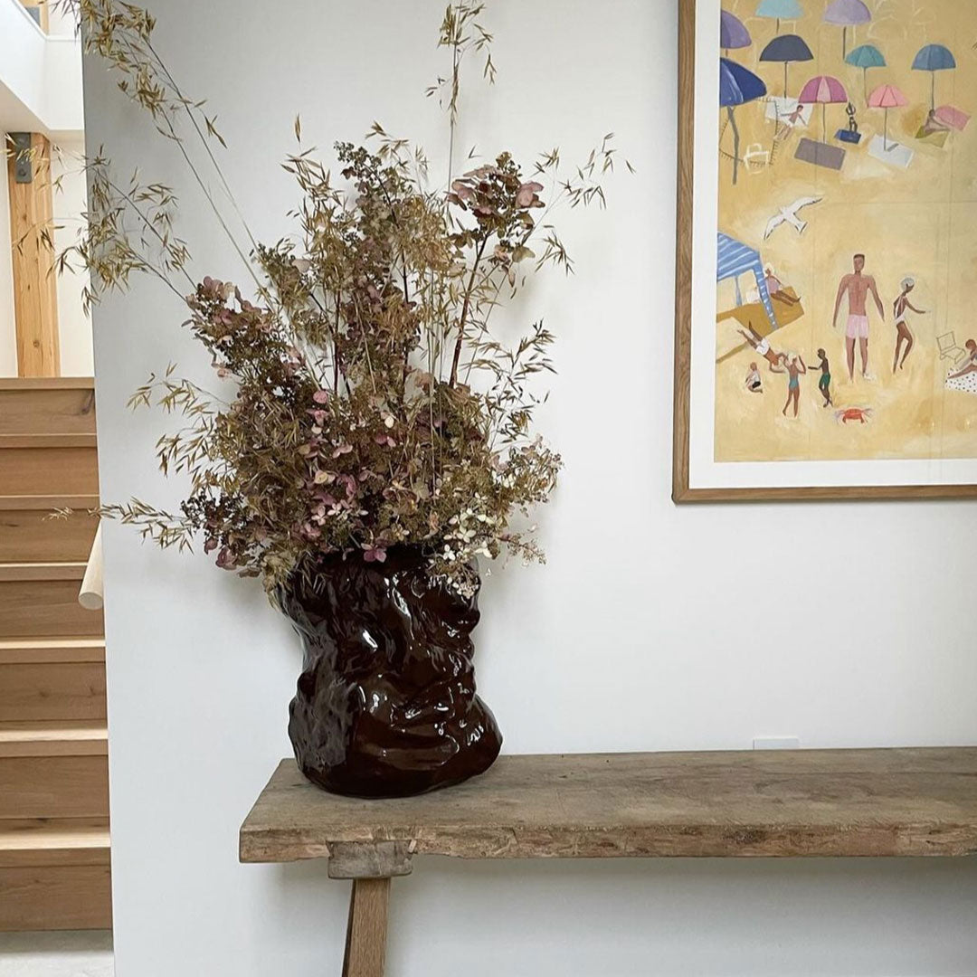 To achieve the perfect balance between a fluid and a powerful expression, our designers sculpted the first Tuck Vase by hand, thus creating a vase marked by our creative instincts. Combining its vibrant form with a high-gloss glaze, this design will answer any prayer for a remarkable piece, created in the nexus of art and handicraft. Use the vase with freshly cut flowers or by its own.